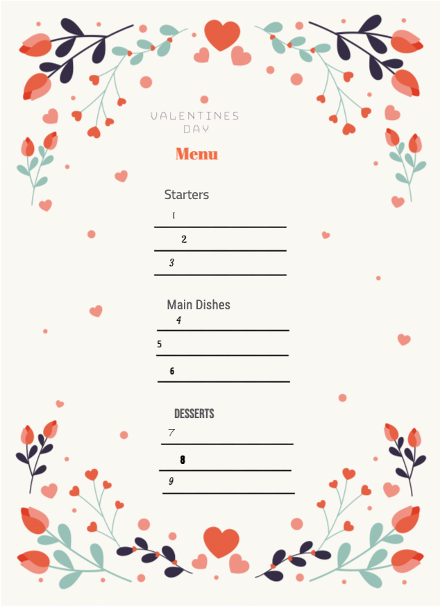 Impress your customers with a beautiful and romantic Valentine's Day menu design. Our template is easy to use and fully customizable, so you can create a menu that perfectly matches your brand and style.